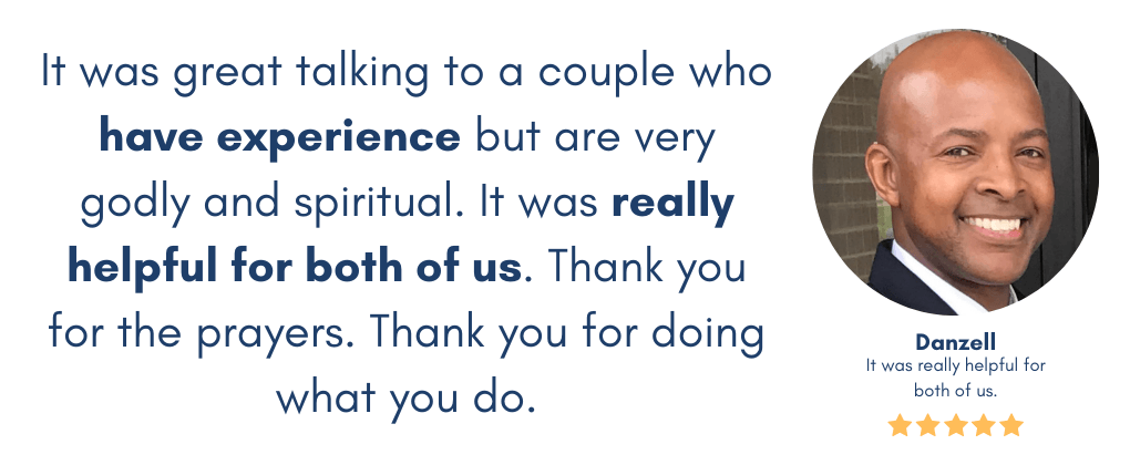 NOTE: We are not licensed therapists but certified Marriage and Couples Mentors / Counselors who can help guide you through your relationship challenges.